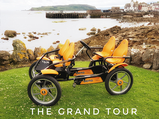 Seats two adults and two children with the two adults pedalling. The seating is similar to a recumbent bike, which may offer a different pedalling experience for some. We have only one available, so booking in advance is recommended to avoid disappointment. Due to being a single speed vehicle with not motor the Grand Tour typically takes around 2.5 hours to complete a circuit of the island, it is fitted with plastic seats and seatbelts for the kids in the front. I am happy to discuss any questions before booking.