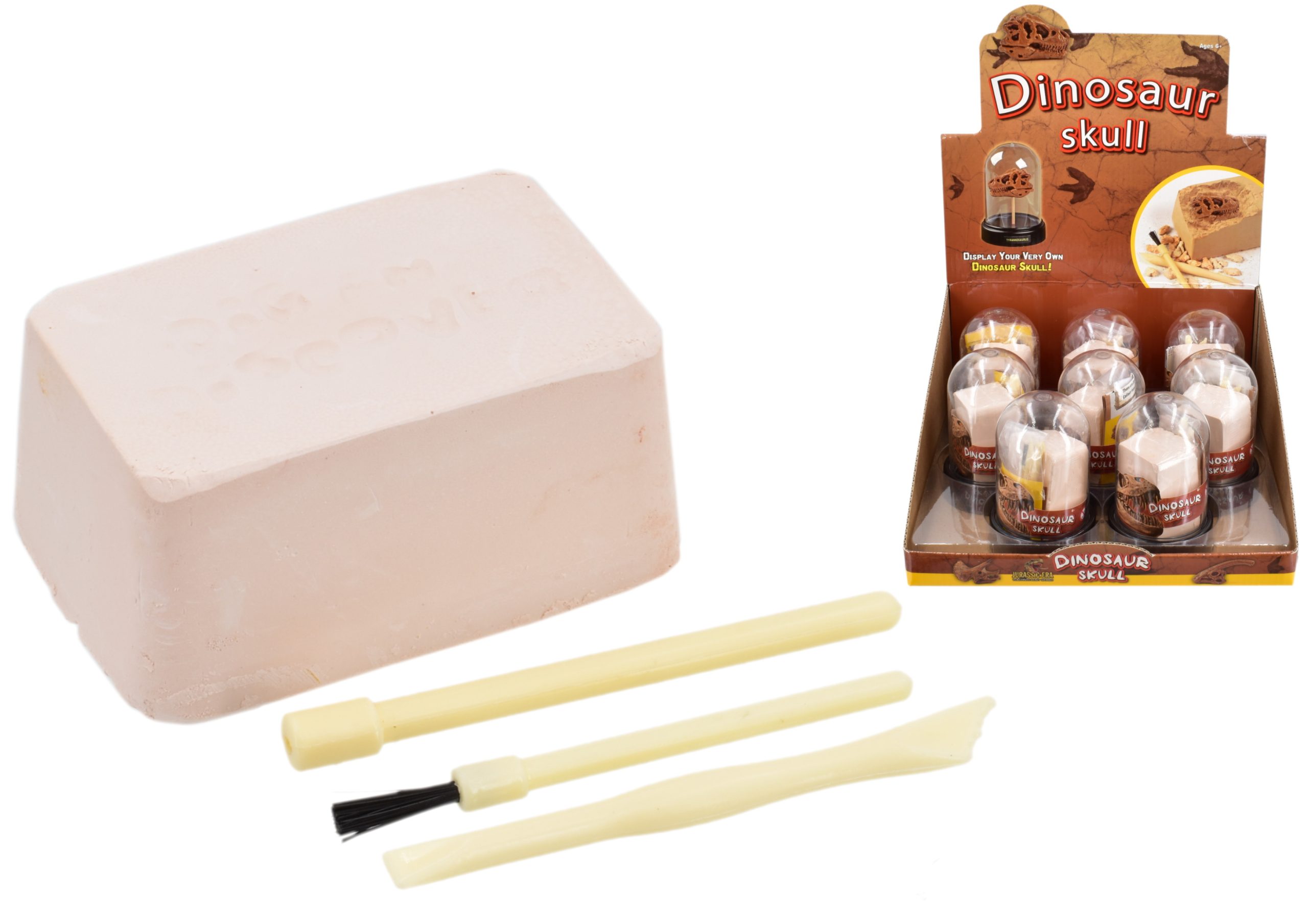 Uncover prehistoric treasures with the Dinosaur Skull Dig and Display Mini Kit, perfect for young budding archaeologists! This hands-on excavation set allows kids to become real-life paleontologists as they carefully dig through the excavation block to uncover a detailed dinosaur skull replica. Using the included tools, kids will scrape, dig, and dust away the material to reveal their very own fossilized dinosaur skull. Once unearthed, they can proudly display their find. Designed for ages 3 and up, this engaging kit encourages problem-solving, patience, and a fascination with dinosaurs. It’s an exciting and educational way to bring the ancient world of dinosaurs to life!