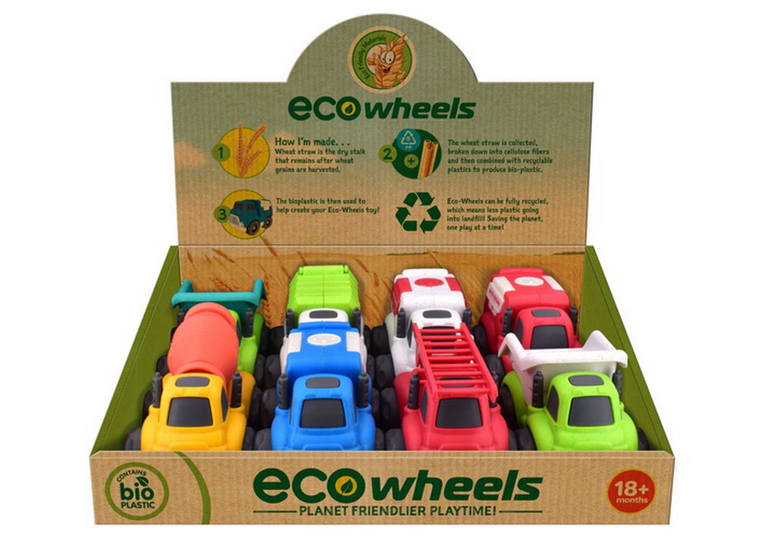 The Eco Wheels Bioplastic range are sustainable and environmentally-friendly toy vehicles designed to entertain children while teaching them about the importance of being conscious of their ecological footprint. This eco-friendly toy is made entirely from bio-plastic, which is derived from renewable resources and does not contribute to plastic waste accumulation. The vehicles feature vibrant colour that captures the attention of children and stimulates their imagination. With a length of 10 cm, the vehicles are ideal for little hands to grip and maneuver. Its lightweight design ensures easy mobility, allowing children to push or roll the car effortlessly on various surfaces, both indoors and outdoors.
