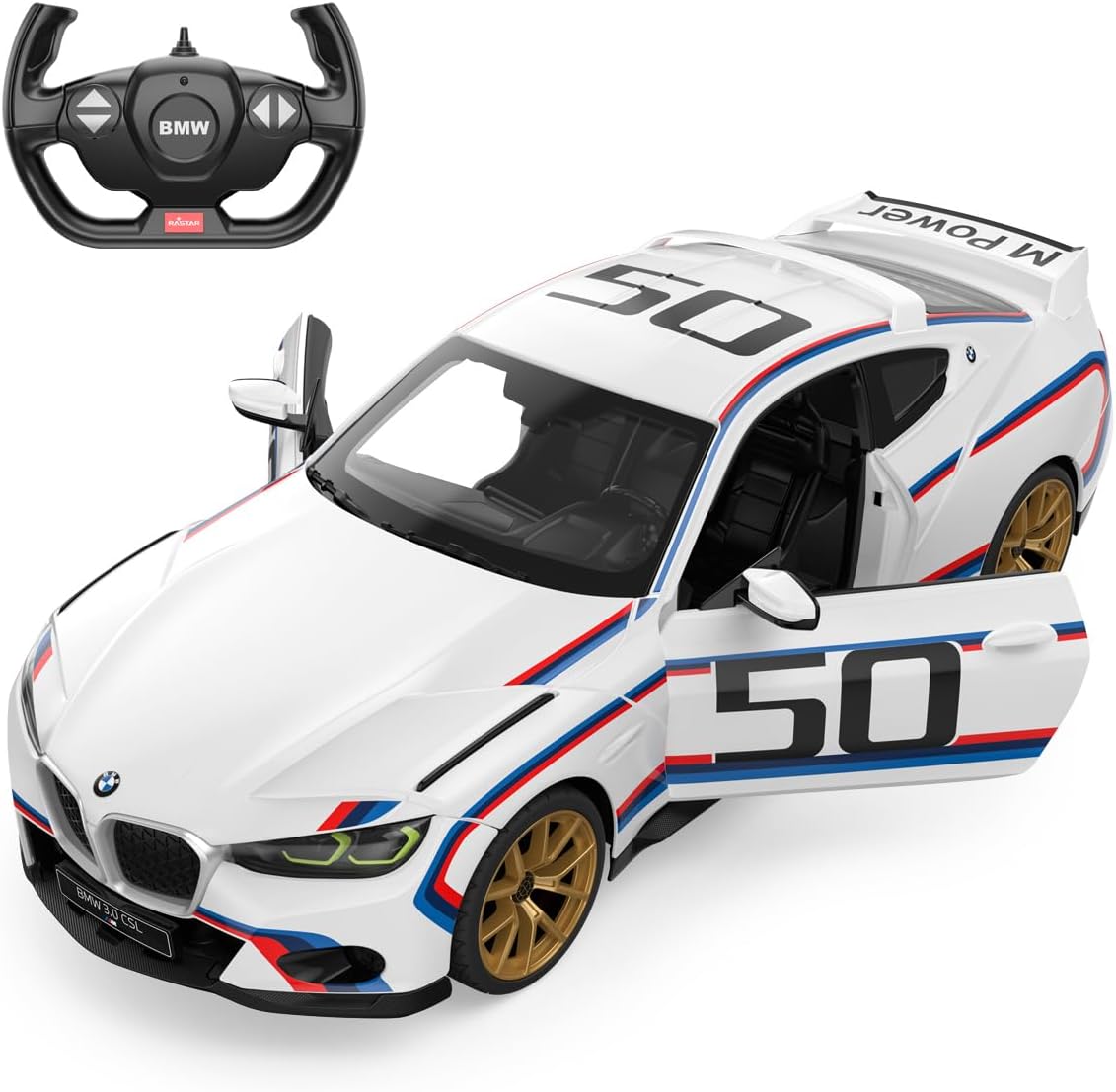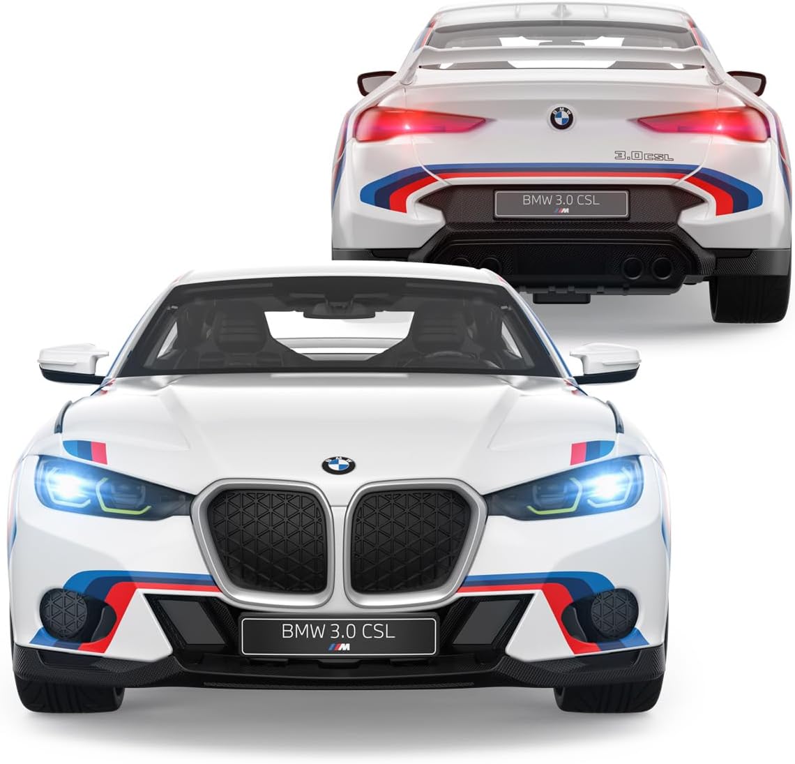 AUTHORIZED REMOTE CONTROL BMW TOY CAR: On the 50th anniversary of BMW M GmbH, this automotive icon is coming back to life: BMW M is bringing the 3.0 CSL back onto the road as a strictly limited new edition; Officially licensed, 1/14 scaled back on real BMW 3.0 CSL car; Rastar BMW 3.0 CSL rc car measures 13.4×5.7×3.8 inch